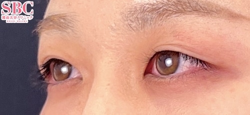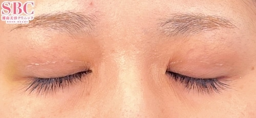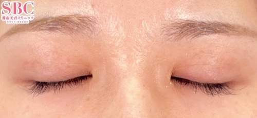 まぶたを閉じても糸玉や傷跡がないので、写真のとおり生まれつきの二重のような仕上がりです。