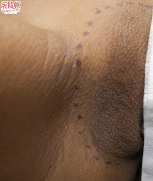 根こそぎ竹田先生が2004年に開発提案し湘南美容クリニックの正式メニューとなった根こそぎベイザーシェービング法の術後の症例になります。この方法はベイザーという超音波でニオイの原因となるアポクリン汗腺を溶かしその後にストライカーという機械でアポクリン汗腺を削りながら吸引し体外に除去する方法です。従来の数cmの切開を行う剪除法とほぼ同様の効果が得られるのみならず傷もわずか5mmほど術後の圧迫も24時間から48時間ほどと負担の少ない方法になっています。2025年は術後の経過はフォトギャラリーで第1、3日曜日に術中の模様に関してはインスタグラムで毎週水曜日に紹介する予定ですのでぜひご覧ください。根こそぎベイザーシェービング法はワキのニオイに対して行うことが多いですがワキ以外ですとスソに対しても数多く行っております。