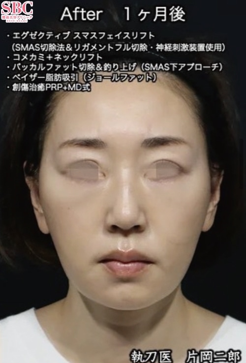 以前に他院にて脂肪吸引(頬・ジョール・顎下)+糸リフトを行いました。結果、凸凹とバッカルファットが目立ち、頬のたるみが悪化してしまいました。今回以下の修正手術を行いました。・エグゼクティブスマスフェイスリフト(スマス切除+リガメントフル切除・神経刺激装置使用)・バッカルファットつり上げ固定・ジョールファット脂肪吸引・創傷治癒PRP+MD式・全身麻酔(麻酔専門医)術後1ヶ月目の比較写真です。目立っていたフェイスラインのたるみと凸凹、バッカルファットのヘルニアが改善出来たと思います。最近、脂肪吸引+糸リフト後の修正相談が多いです。糸リフトでは根本的なたるみ改善にはならないので、適切な手術適応を判断できるかどうかが重要になります。今回のケースでも、一度脂肪吸引された範囲の剥離は困難を極めますので、最初から切開フェイスリフトを行った方が効果は高いです。自身が求める結果に対する手術選択・手術適応を正しく判断できるドクター選びが大切になります。----------------------------------------------------執刀医 片岡二郎●医師・医学博士/美容外科専門医(JSAS)●湘南美容クリニック新宿本院勤務●医師歴25年以上(脳神経外科歴10年・美容外科歴20年)●SBCグループ技術統括医長●2021年-2024年 4年連続 若返りのエキスパートドクター認定医●切開フェイスリフト 執刀件数 4年連続全国1位(21年-24年 SBC内)ご予約の際は「片岡医師指名」とお伝えください。ご予約はこちらから新宿本院0120-5489-40もしくはMy SBCからご予約ください。instagram@sbc_kataokaで検索