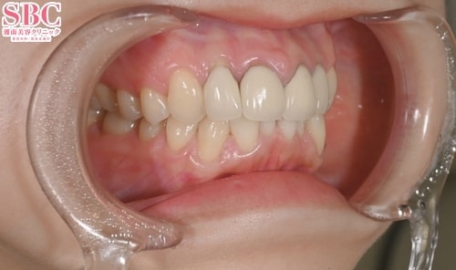 「昔保険で作った被せ物の色や形が気になる。徐々に歯茎が黒くなってきた」とのことで、できるだけ周囲の歯となじむように