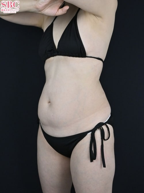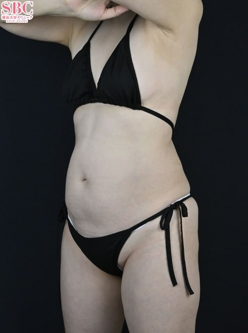 術前に比べ処置後2ヶ月時点で体重は増加されているのですが、お腹周りはむしろすっきりとされており、下腹部や腰の丸みが取れています。脂肪細胞を破壊し、排出することでリバウンドしにくいのがクルスカのおすすめな理由の一つです。