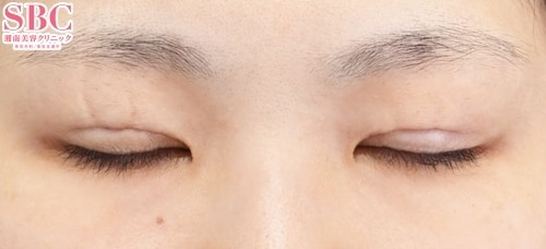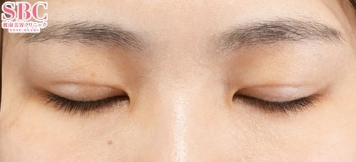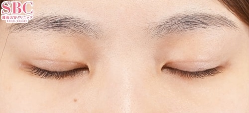 目を閉じても糸玉や傷跡がないので元々二重であったかのような自然な二重に仕上がっています。