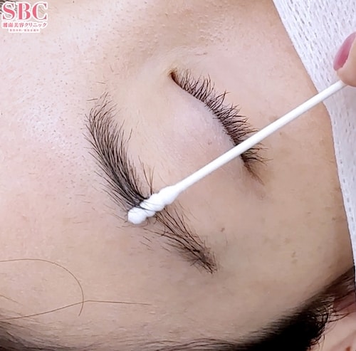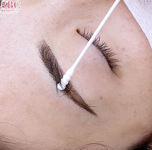 今回のお客様は自眉が黒いので入れた色味との差が少し出ていますが、眉マスカラや、脱色、眉カラーをしていただくことで馴染みます。薄いお色味を入れたい場合は、事前に脱色や眉カラーをしておくと、よりお顔に馴染んだ仕上がりになります。