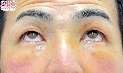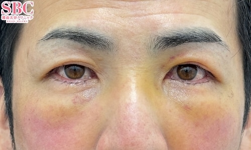 あなたのクマ、目の下の膨らみとともに皮膚もたるんでいませんか?そんな方は、脂肪を処理するだけでは伸びた皮膚が余ってしまいます。より綺麗に仕上げるためには皮膚切開も同時に行える【切開ハムラ】が適応となります。--------------------------------40代 男性[ 今回の施術内容 ]▼切開ハムラ法モニター番号|No.031-0589モニターURL|https://www.s-b-c.net/k_campaign/campaign031-0589.html--------------------------------[ 実績 ]切開ハムラ法 SBC内症例数全国No.1※2023年下半期・2024年下半期--------------------------------【切開ハムラ】は、眼窩脂肪を取らずに目の下に移動・固定させることで、脂肪注入無しでクマの改善ができる治療です。さらに、まつ毛の生え際を切開して余分な皮膚の余剰切除も行うため、目の下の膨らみと同時に皮膚のたるみも改善します。ナノリッチ(脂肪幹細胞注入)は無くても良いですが、あったほうがより皮膚にハリが出て色味も改善します◎目の上の凹みへの注入も効果的です。年齢的には40歳〜50歳以降の方で、皮膚のたるみが強い方や膨らみが強い方が適応になります。気になる傷ですが、私の切開ラインはまつ毛の生え際なのでまずバレません^_^ダウンタイムも、むしろ皮膚切除した方のほうが軽い気がしています。※皮膚は取りすぎると外反するので要注意ですが、切除量を守れば大丈夫です。クマ取りは初回手術がとても大切な治療です。失敗したくない方は、ぜひ私にお任せください。ご予約をお待ちしております。