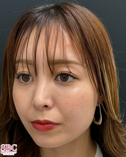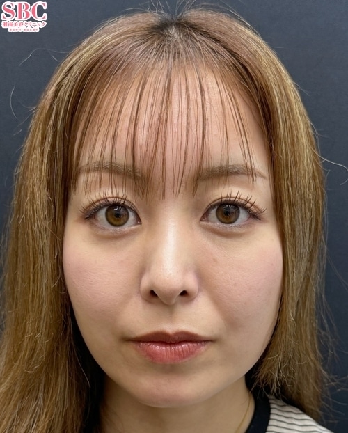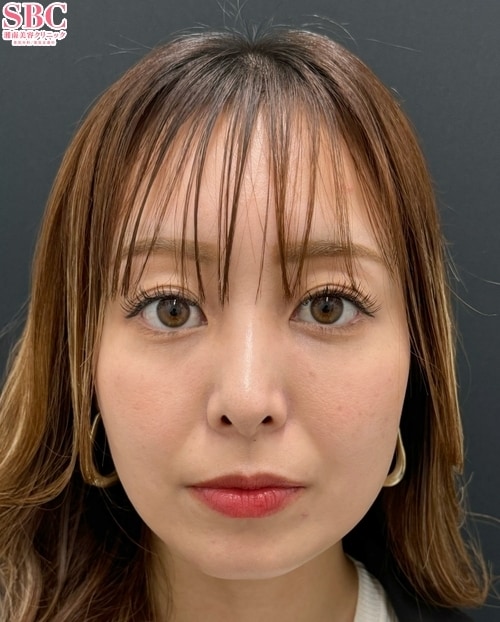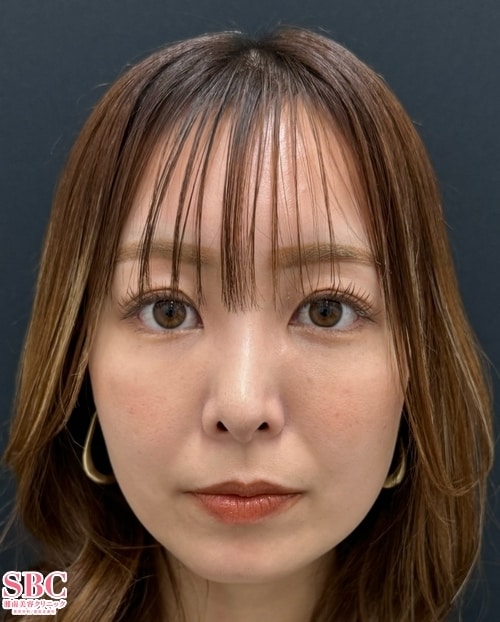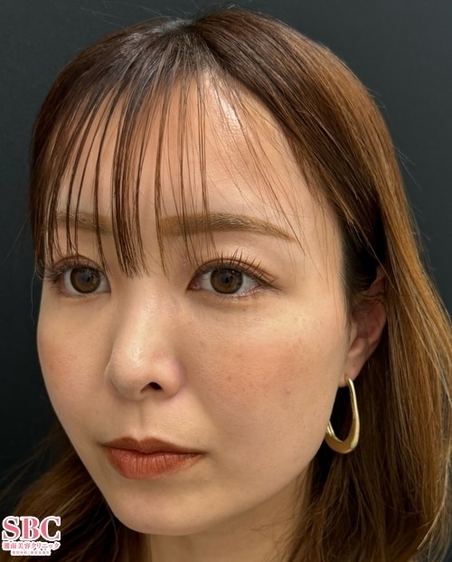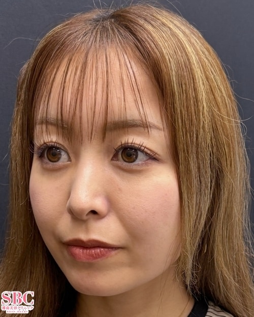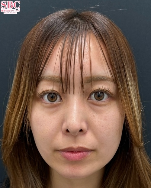 目の下の切らないたるみ取り+脂肪注入(コンデンスリッチフェイス)を行い、しっかりと頬の高さを出して明るい印象に変わりました。また、ナノリッチを組み合わせることで色味も明るく変わりました。