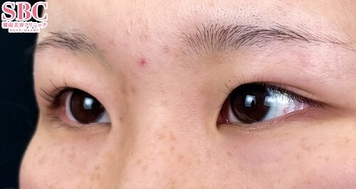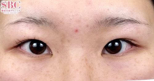 術前は奥二重の線が見えますが、奥目なこともあり目の上に瞼の皮膚が覆い被さり目が小さく見えてしまっています。