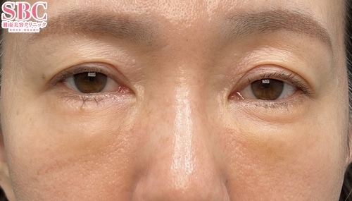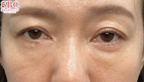 皮膚が柔らかく、脂肪の膨らみの移動により目の下のたるみが目立つタイプなので脂肪注入も合わせてご提案。