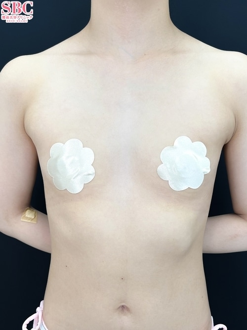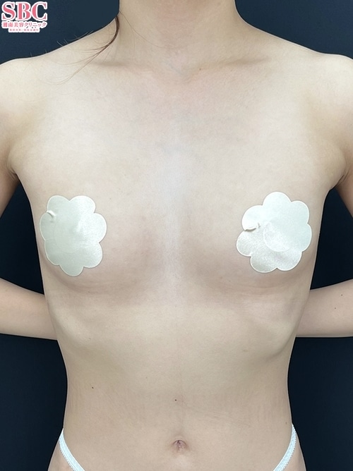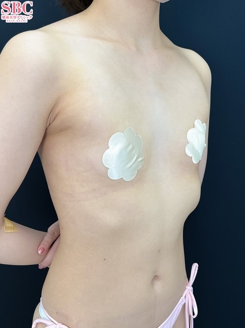 痩せ型で皮膚が伸びにくいタイプでしたが、谷間・バージスライン・外側に張り出す丸い形を形成したことでサイズアップを実感しやすいバストに!