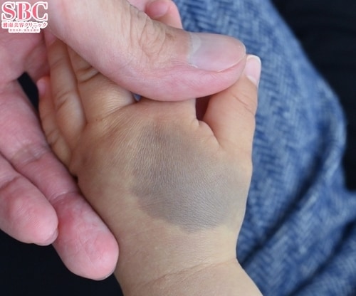 生後5ヶ月のお子様で、生まれつき手の甲に青いあざがありがあります。