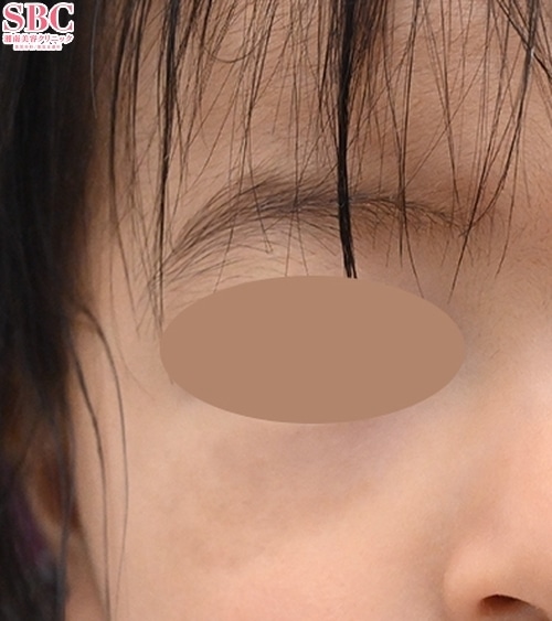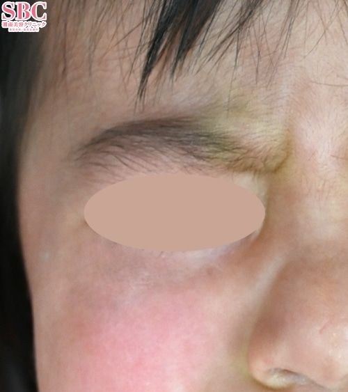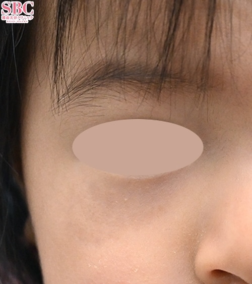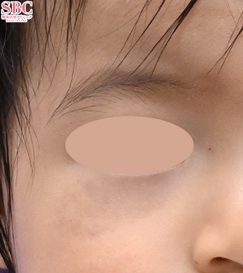 生後1歳のお子様で、生後6ヶ月ごろから右眼の下に灰色のあざを認めるようになりました。