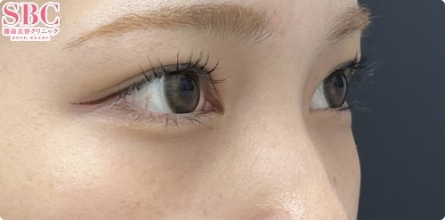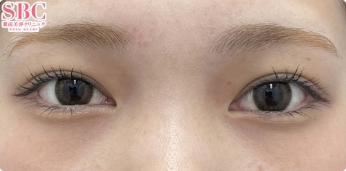 Teen二重術と目の下の切らないクマ取りを同時に行ったため術後の腫れは単体で行うよりも強く出ましたが、ダウンタイムは一度で済み、ダウンタイム後は非常に華やかな目元になりました。