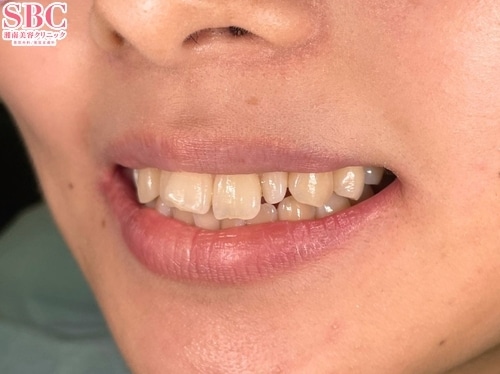 矯正の提案もさせていただきましたが、とにかく早く綺麗にしたい!とのことでセラミック治療を選択。