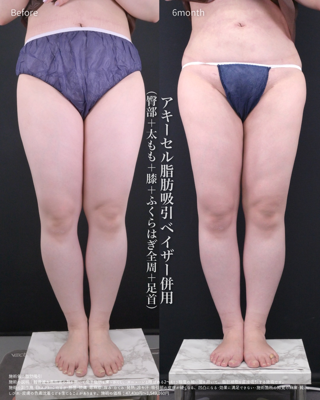 【独自の美デザインで、ご満足いただけるようごっそり吸引します】期間:術前→6ヵ月後年齢:20代後半施術名:アキーセル脂肪吸引 ベイザープラス施術部位:お尻・太もも・膝・ふくらはぎ全周・足首モニター番号:002-3453(脂肪吸引)リバウンドしにくい理想のボディラインをデザインする【 脂肪吸引 】-Dr.須田が選ばれる理由-■独自の脚長デザイン■…なめらかで美しい、須田先生だからこそ可能な脚長デザイン。ただ細くするだけではなく、バランスや美しさを重視します。脚以外にも、二の腕・お腹・お顔のご指名も多く頂いております。■負担最小限■…ベテランで施術もスムーズ。「寝ている間にあっという間に終わった」との声多数!施術が長引かないからダウンタイム、お身体への負担も最小限です。■満足度の高さ■…2023年度も顧客満足度五つ星。お客様のご要望に合わせた多様なご提案で、他の部位もお願いしたいとリピーターが絶えません。丁寧で柔らかなカウンセリングも人気の一つです。ダイエットでは中々叶えられなかった部分痩せをたった1回の施術でご満足頂ける様ごっそり吸引致します。美しいボディラインを実現する為骨格やバランスにこだわります。美容外科医歴25年以上の圧倒的症例数☆細やかな施術と綺麗な仕上がりで他の施術もお願いしたいとリピート指名多数!お客様のご希望と、長年培ってきた豊富な知識と経験、技術を掛け合わせて一緒にお悩みを解決致します。丁寧なカウンセリングとスムーズな施術も人気♪アフターケアまでお任せ下さい。無料カウンセリングのご予約はこちらから↓新宿本院専用フリーダイヤル0120-5489-40WEB予約はMySBCアプリがスムーズです★インスタグラムでも症例写真をご紹介しております@sbc_suda新宿本院公式アカウント@sbc_shinjukuhonin★amebaブログでは詳しい解説を症例写真と共にアップ中★質問も受け付けております!https://ameblo.jp/sbc-shibuya/ぜひご覧下さい♪
