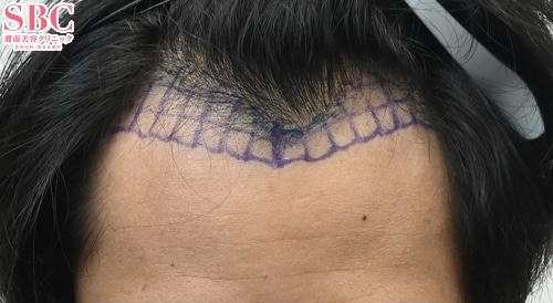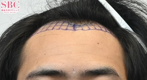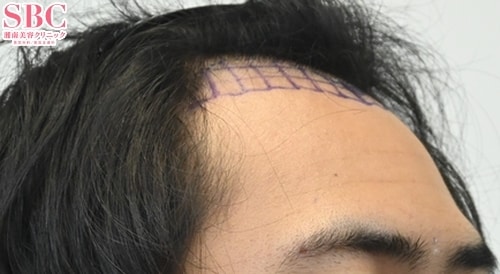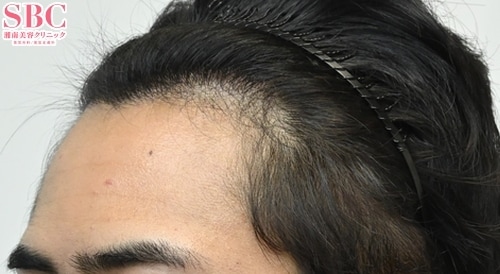 1〜2年まえからシャンプーの際に生え際が広くなったと感じていてAGA治療の中で植毛が一番M字の改善できそうと思われたとのことで当院受診されました。