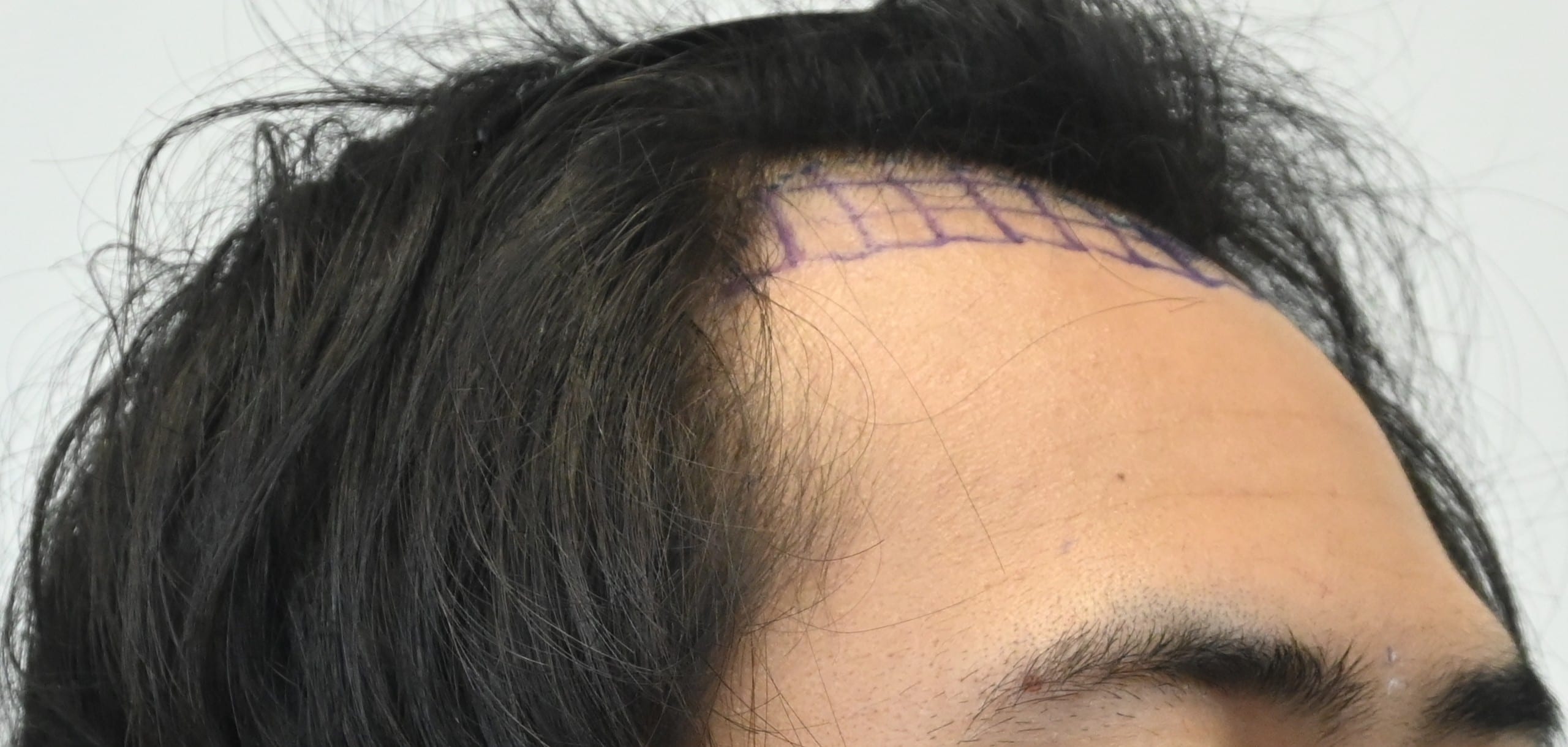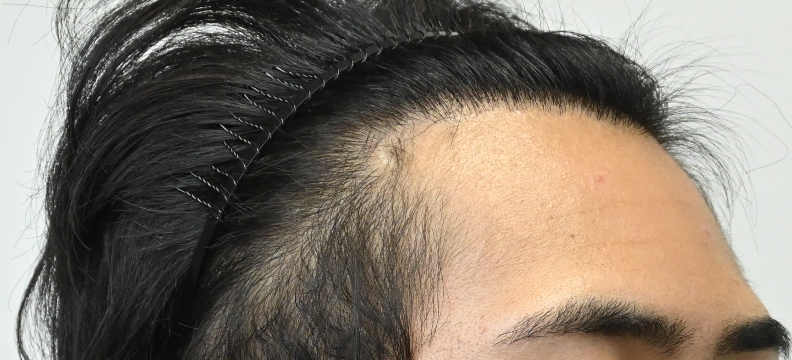 1〜2年まえからシャンプーの際に生え際が広くなったと感じていてAGA治療の中で植毛が一番M字の改善できそうと思われたとのことで当院受診されました。