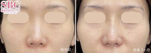 SBCソフトプロテーゼと小鼻縮小(内側法+締め付け縫合)を受けられて術後3ヶ月目の経過の症例です。