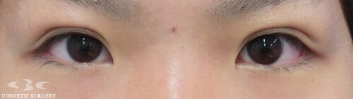 術前です。瞼に左右差があり、普段はアイプチ、つけまつ毛等でごまかしているとのことでしたが、左右差を整え、幅を広げて平行型の二重になりたいとのことで、手術を希望されました。