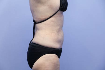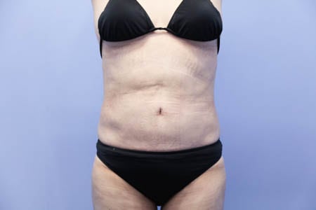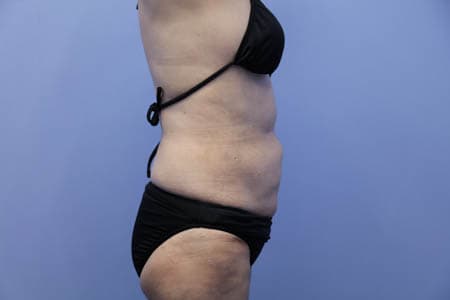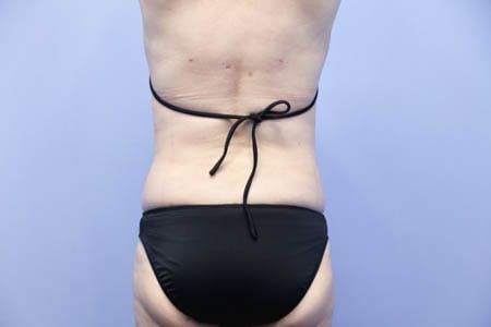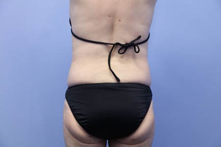 今回紹介する患者様はリピーターの患者様です。患者様はほぼ全身の脂肪吸引を受けてくださっています。今回はおなかの下腹部を中心に脂肪吸引をしましたのでその術後1ヶ月目の状態を紹介しましょう。みぞおちあたりにある皮膚の折れ目のクセ(ほぼたるみ)は脂肪吸引の対象外ではありますがそれ以外の今回の対象となった下腹部やウエスト腰あたりはしっかりとスッキリして患者様は今回の脂肪吸引にも大満足のようでした。