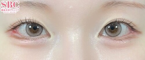 元々二重で横長の美しい目元でしたが、ややつり目気味で、少しクールでキツく見られやすい印象がありました。今回はタレ目形成と目尻切開を組み合わせ、白目の見える範囲を下方向と外側へ自然に広げるデザインに。二重はそのまま活かしつつ、優しい・柔らかい印象のお目元へとアップデートしています。角度の調整を繊細に行うことで、やりすぎ感のないナチュラルな“愛され目元”に仕上げました。