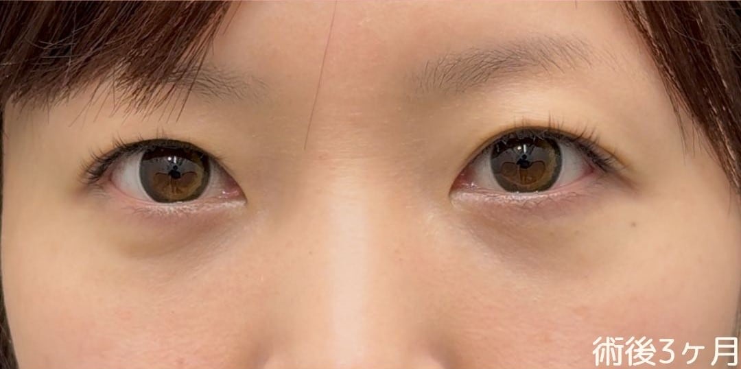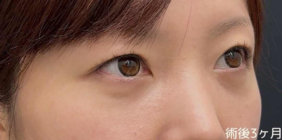 術後3カ月、目元はかなり若返りもともとあった涙袋もくっきり現れてきました。一番の悩みが解消できたと大変うれしいお言葉をいただきました!