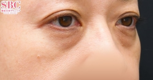 目の下、ゴルゴラインに脂肪注入でなめらかに、さらに細かいナノリッチを併用することで「色クマ」を解消。