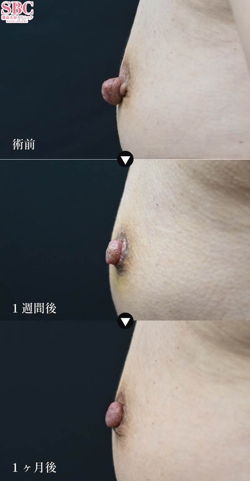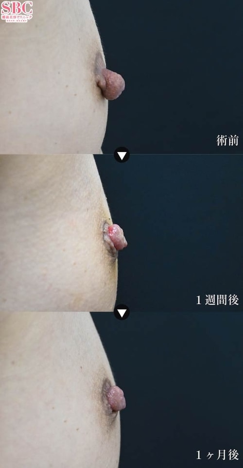 直径・高さともに縮小された、丸い乳頭に仕上がっています。