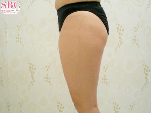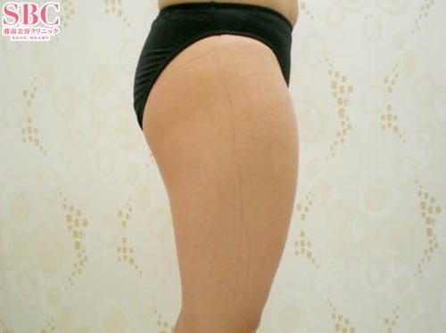 太ももの根こそぎベイザー脂肪吸引の術後1ヶ月目の状態です。