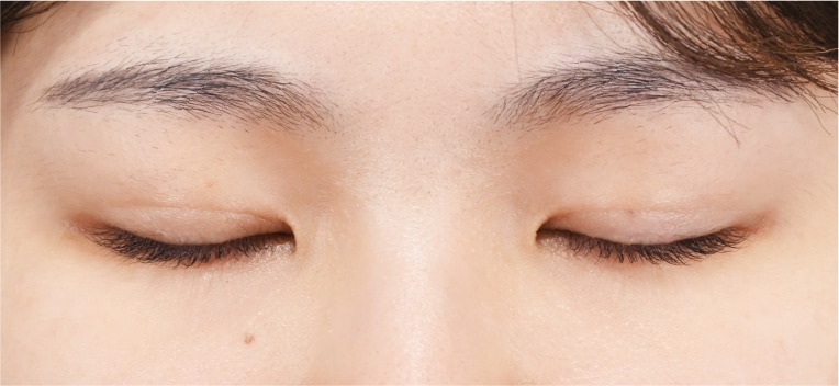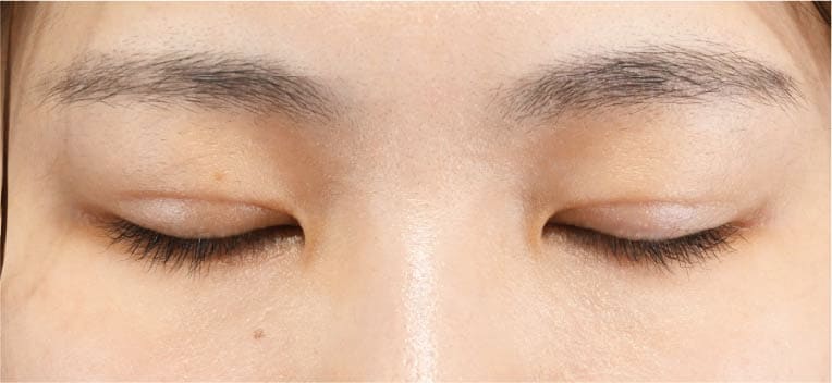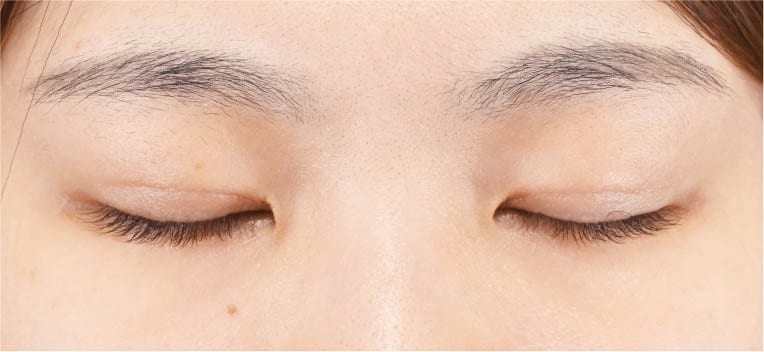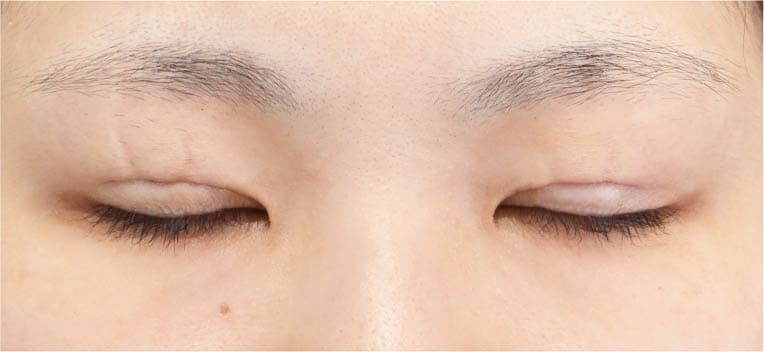 目を閉じても糸玉や傷跡がないので元々二重であったかのような自然な二重に仕上がっています。