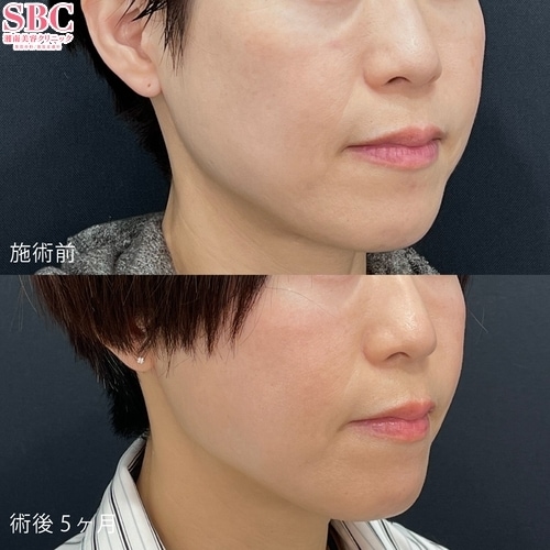 術後1週間では黄色い内出血が出ていますが、頬がスッキリし、自然できれいな逆たまご型の輪郭になられているのが分かります。