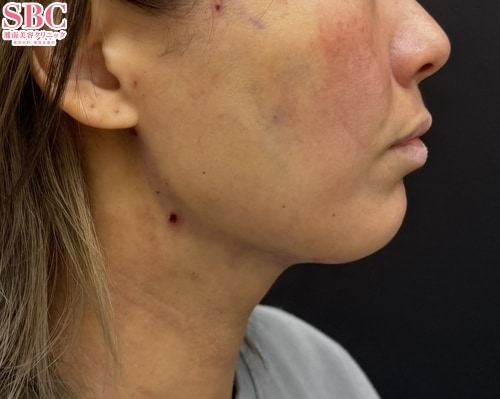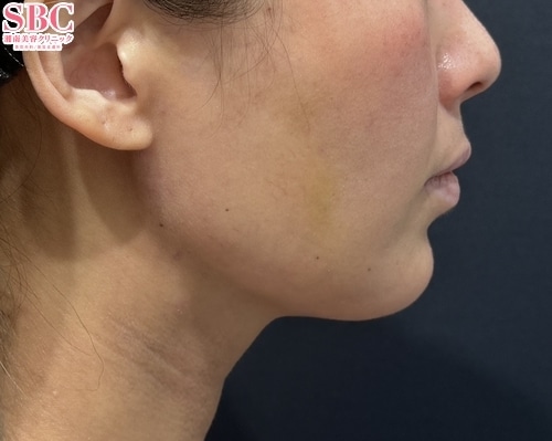 こちらの方は30代女性で、アゴ下の脂肪を綺麗に吸引いたしました。この方は糸リフトも併用しています。顎下の脂肪は特にダイエットでも取るのが難しく、ラインが出ずらい箇所になります。脂肪吸引で脂肪を取り除き、さらに糸リフトで弛みの予防をする事が効果的です。