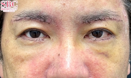 あなたのクマ、目の下の膨らみとともに皮膚もたるんでいませんか?そんな方は、脂肪を処理するだけでは伸びた皮膚が余ってしまいます。より綺麗に仕上げるためには皮膚切開も同時に行える【切開ハムラ】が適応となります。--------------------------------50代 男性[ 今回の施術内容 ]▼切開ハムラ法モニター番号|No.031-0589モニターURL|https://www.s-b-c.net/k_campaign/campaign031-0589.html▼眉下リフトモニター番号|No.031-0595モニターURL|https://www.s-b-c.net/k_campaign/campaign031-0595.html--------------------------------[ 実績 ]切開ハムラ法 SBC内症例数全国No.1※2023年下半期・2024年下半期眉下切開 SBC内症例数中四国No.1※2024年下半期--------------------------------【切開ハムラ】は、眼窩脂肪を取らずに目の下に移動・固定させることで、脂肪注入無しでクマの改善ができる治療です。さらに、まつ毛の生え際を切開して余分な皮膚の余剰切除も行うため、目の下の膨らみと同時に皮膚のたるみも改善します。ナノリッチ(脂肪幹細胞注入)は無くても良いですが、あったほうがより皮膚にハリが出て色味も改善します◎目の上の凹みへの注入も効果的です。年齢的には40歳?50歳以降の方で、皮膚のたるみが強い方や膨らみが強い方が適応になります。気になる傷ですが、私の切開ラインはまつ毛の生え際なのでまずバレません^_^ダウンタイムも、むしろ皮膚切除した方のほうが軽い気がしています。※皮膚は取りすぎると外反するので要注意ですが、切除量を守れば大丈夫です。クマ取りは初回手術がとても大切な治療です。失敗したくない方は、ぜひ私にお任せください。ご予約をお待ちしております。