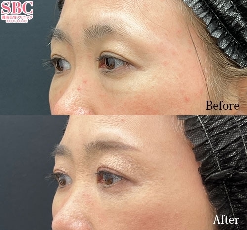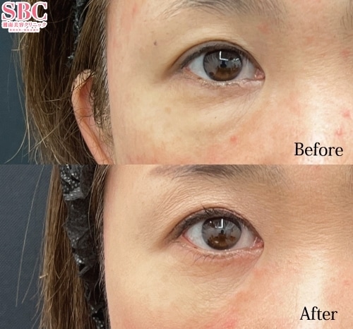 50代のお客様のクマ治療症例です。目元のたるみによるクマが解消され、若々しい印象の目元になりました。