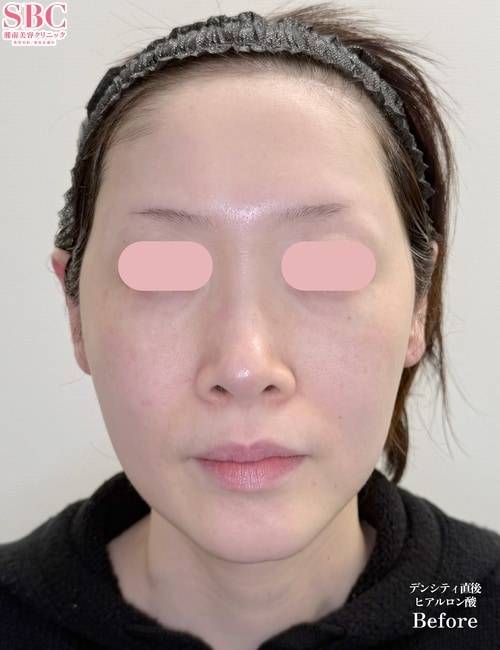 まずデンシティで顔全体の土台を整え、そのうえでヒアルロン酸を骨格に沿って適切に配置することで、ここまでの変化を出すことができます。