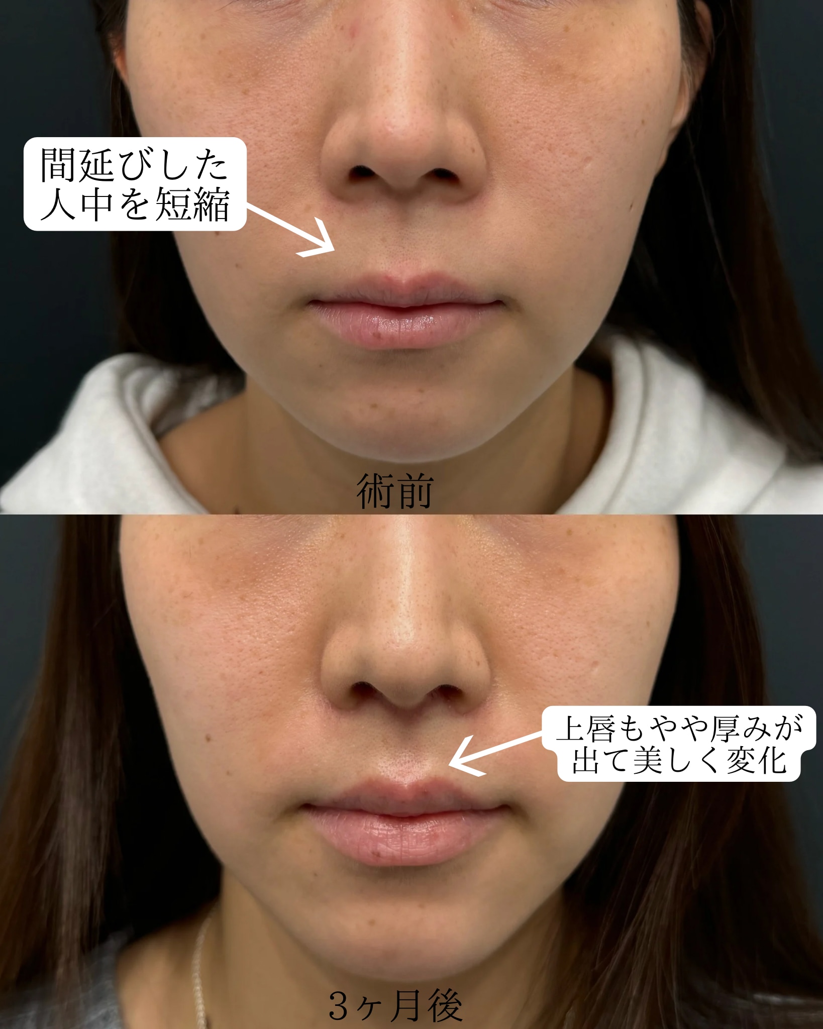 No.358661【その他の手術】【人中短縮】リップリフトで間延びした口元をスッキリと!下顔面を黄金比にしてバランスのとれた顔立ちへ!熊本院ならメジャーではない治療もご案内可能です。