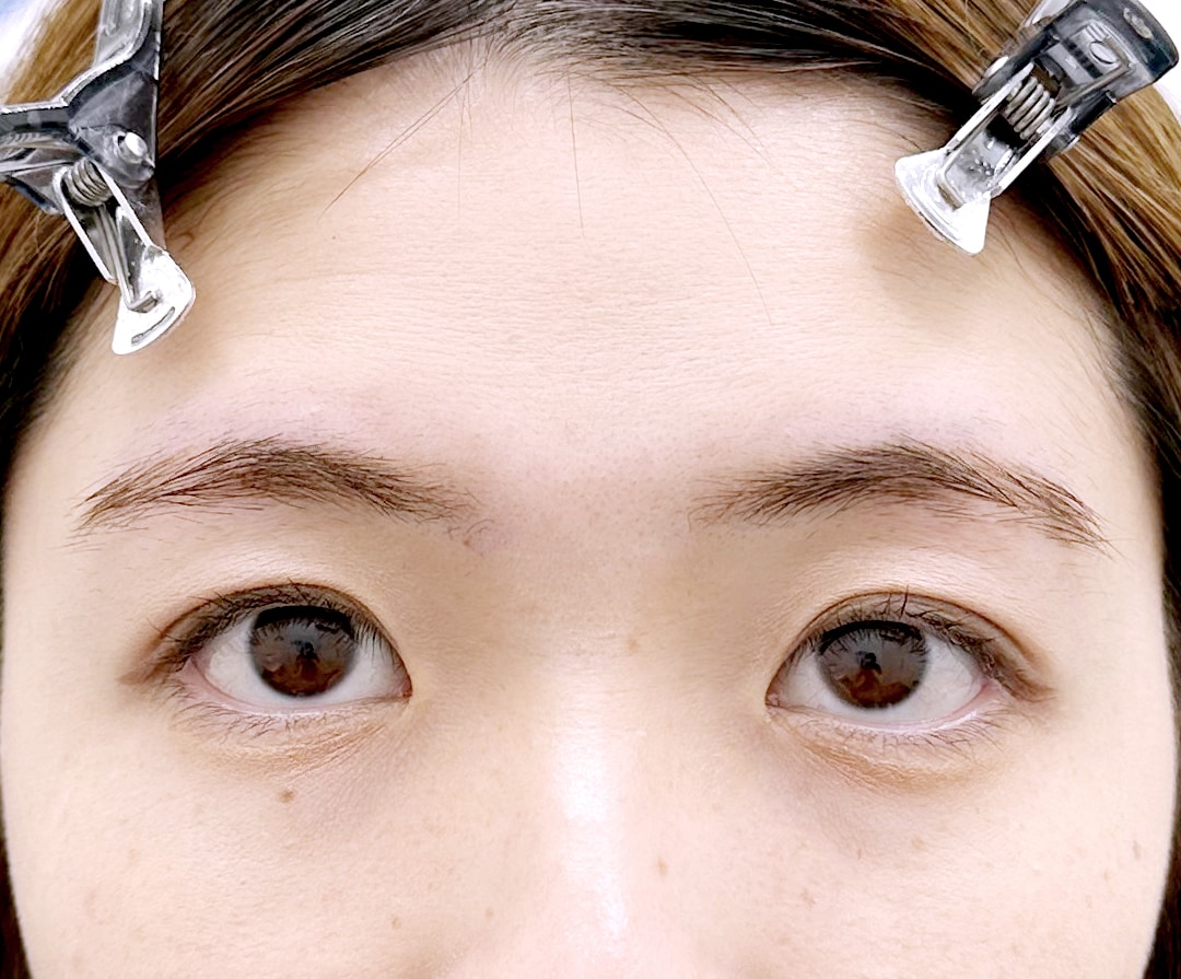 自眉より明るいカラーの場合は、眉マスカラ or脱色をしていただくとアートメイクの色味と毛並みが馴染みます。
