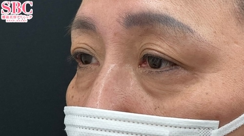 こちらのお客様は目の下のふくらみだけでなく、リガメントによるへこみ、皮膚たるみもある状態でしたので、それらすべてにアプローチできる〈切開ハムラ法〉を選択しました。