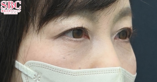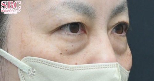 こちらのお客様は、眼窩脂肪により鬼グマができていました、裏ハムラ法と脂肪注射を施術することで、瞼の表面を切らずにクマを改善し、滑らかで違和感のない仕上がりになりました。