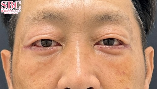 元々かなりクマが目立っていた方の切開ハムラの症例です。この方の場合は、膨らみがかなり強かったので脱脂だけでは皮膚が伸び切ってしまうため、切開法で無駄な皮膚も取り除く方法が1番綺麗に改善します。術後クマがなくなったことでとても若々しく、目の開きまで改善しました。