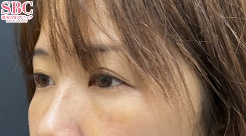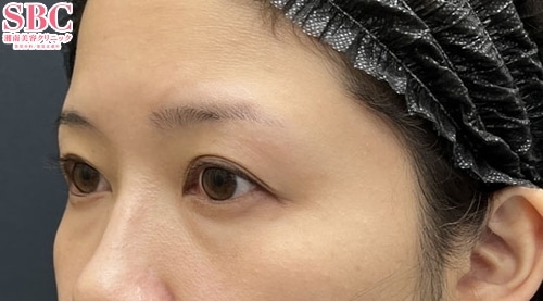 こちらのお客さまは30代後半の方です。笑った時や表情を動かした時にクマが目立ちやすいので、ティアトラフリガメントの影響が強いといえます。内側〜中央あたりの処理が非常に重要となりますので、裏ハムラ法で脂肪をしっかり凹みに移動させます。裏ハムラ法単体でここまでキレイに仕上げることができます。【裏ハムラ法とは?】目の下のクマの原因である「脂肪の量」と「靭帯」の処理をすることで、ほほを滑らかにして若返らせる治療です。『裏ハムラ法』は「脂肪の量」のみを改善する『脱脂術』に比べて、再発が少なく、凹みまで改善することができます。ダウンタイムの少なさは丁寧な処置によるものでもあります。脱脂術、脂肪注入、裏ハムラ、切開ハムラなど、湘南美容クリニックのクマのメニューすべてに対応することが可能です。クマ治療なら八王子院院長のサクライにお任せ下さい。