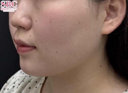 症例写真ページをご覧いただきありがとうございます。20代女性のお客様の術前・術後のお写真です。頬周り、顎下のボリュームが取れフェイスラインが術前と比較しくっきり出ているのがお分かりいただけるかと思います。【脂肪吸引注射】は脂肪吸引よりも細い吸引管を使用することで脂肪吸引よりもダウンタイムを少なくし、かつレーザー機器治療よりもしっかりとした変化を1回で出せる手術になっております。一般的な脂肪吸引の吸引管は直径3mmという太さであるため管を挿入するのに切開・縫合・抜糸が必要となりますが、脂肪吸引注射は直径1.6mmという細さのため太めの針穴からアプローチでき、縫合・抜糸が必要ありません。1回である程度の変化は出したいけれど脂肪吸引までの大掛かりな手術はこわいという方、ダウンタイムを少なくすっきり小顔にしたい方、ぜひ一度カウンセリングにいらしてください!!