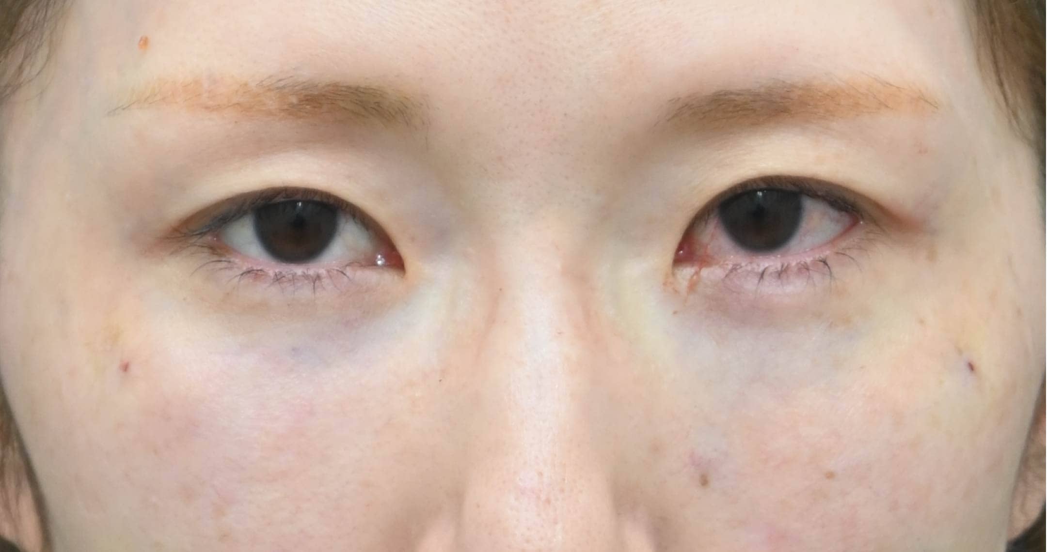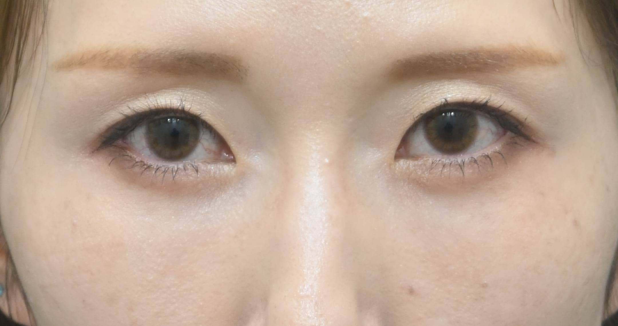 こちらのお客様は、眼窩脂肪により目の下に膨らみがあることで、影グマができてました。クマ取りと脂肪注入を併用することで、スッキリとした自然で美しい印象になりました。