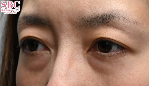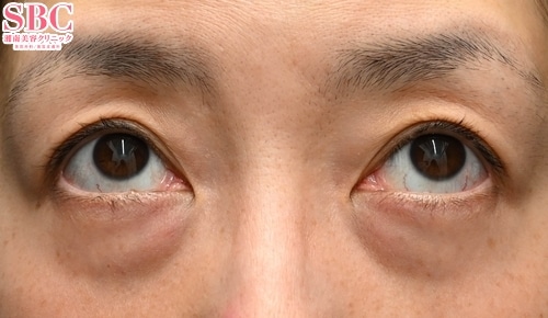 眼窩脂肪の大きな膨らみが目立つクマをお持ちのお客様。