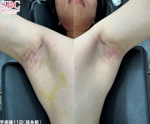 傷はほぼ目立たず、脇のツッパリ感もありません。日常生活もスムーズにお過ごしいただけます