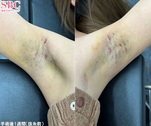 傷はほぼ目立たず、脇のツッパリ感もありません。日常生活もスムーズにお過ごしいただけます