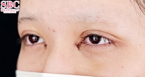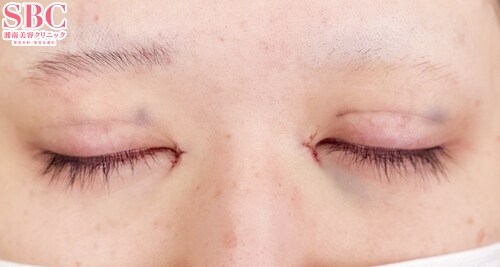 術前は右目にしわが入り、左右差があるお目元です。