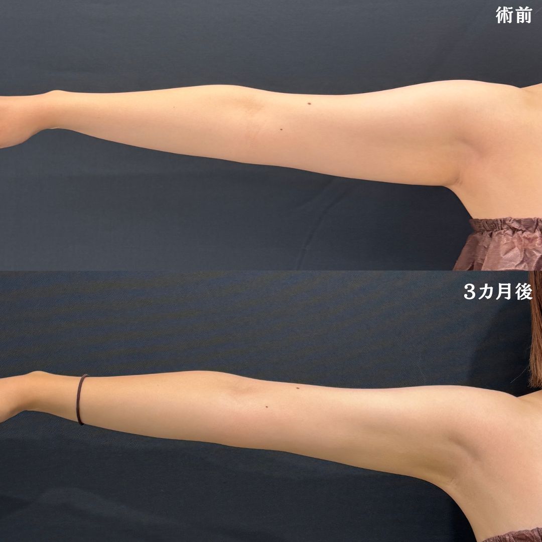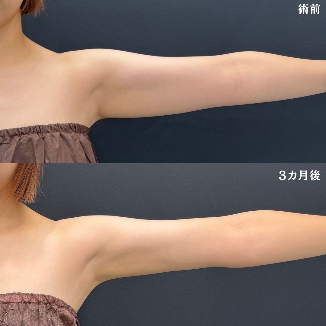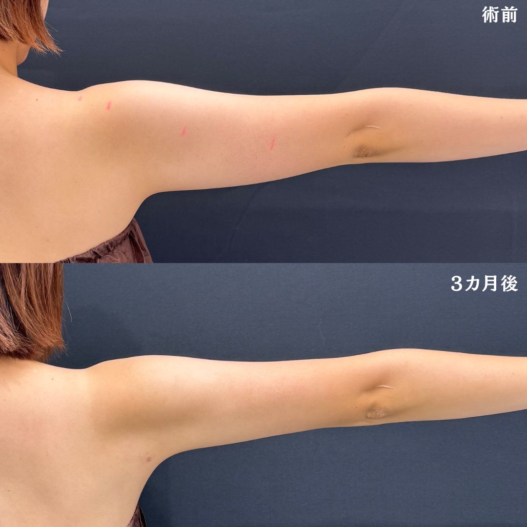 ノースリーブなら「二の腕+肩」までの脂肪吸引の範囲で十分すっきりします。