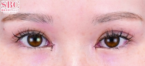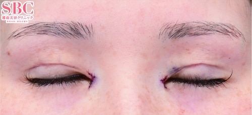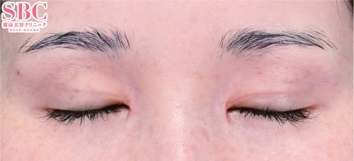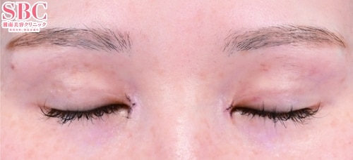 目を閉じても糸玉や傷跡がないので元々二重であったかのような自然な二重に仕上がっています。