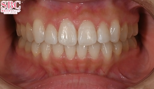 真ん中の歯はハの字にねじれがありが右上の犬歯はやや八重歯感がありますが、しっかり整った歯並びになりました★