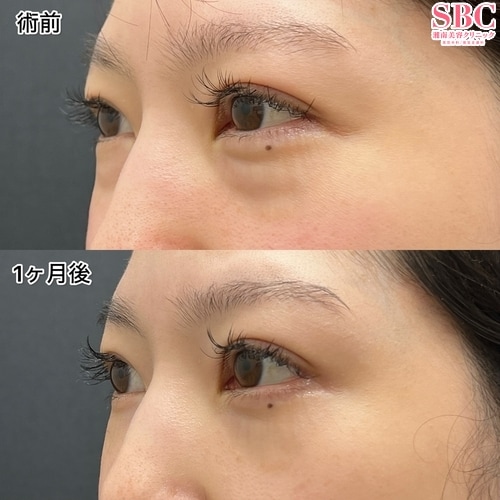 目の下のクマでお悩みのお客様です。目の下の膨らみや溝により影のクマを作っていました。なるべく周りにばれたくないということでダウンタイムをなるべく抑えるために、脂肪注入を行わずに目の下の凹凸を滑らかにできる裏ハムラ法を選択しました。裏ハムラ法は眼窩脂肪の再配置と眼窩隔膜の補強により長期的なクマ改善効果があります。リスクが少なく腫れや内出血も最小限になるよう工夫しております。ノーメイクノーライトでの撮影となっております。私が選ばれる理由、・的確なカウンセリングと分かりやすい説明・内出血や腫れが少ない丁寧な処置・術後も安心して過ごせるアフターフォロー・しっかりと変化を出しつつナチュラルな仕上がり