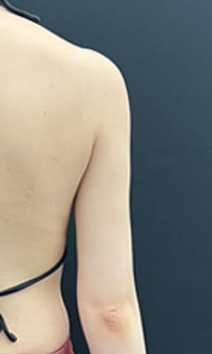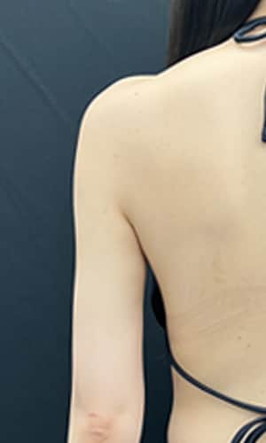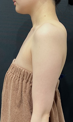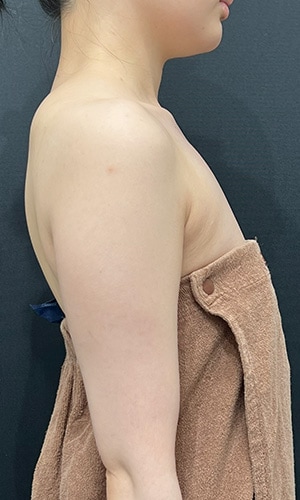 特に肩だけ張り出しているのが気になっていて、このような方にこそ脂肪吸引を受けていただくメリットがあります。脂肪の質も柔らかく、筋肉量も少ない方なのでほっそりとしたきれいな細腕になりました。たるみはもともとない方ですが、吸引量が多くなる予定だったのでエンブレイスRFを併用いただきました。